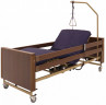 Медицинская кровать Интегра Электро для домашнего ухода, снабжённая электроприводными регулировками положения четырёхсекционного ложа и оригинально реализованной функцией кардио-кресло, представляющей из себя не только статичное полулежачее положение для бодрствования и терапии кардио-заболеваний, но и независимо выдвигающуюся из торца кровати, оборудованную электрическим санитарным устройством каталку для перемещения больного, с электроприводной регулировкой наклона спинки*.